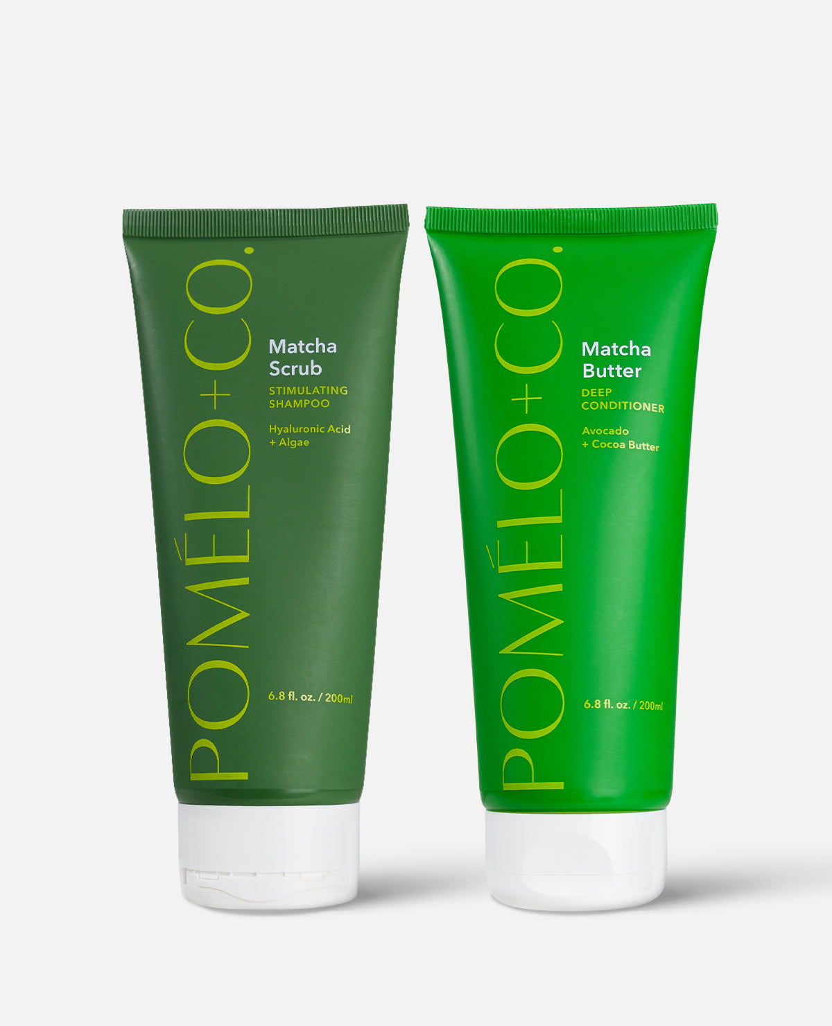 Matcha BasicsExfoliating shampoo with hyaluronic acid and Hydrating Conditoner with AHA for a balanced scalp and radiant hair.